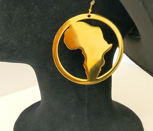 Africa Map Shape Large Circle Gold Stainless Steel Dangle Earrings
