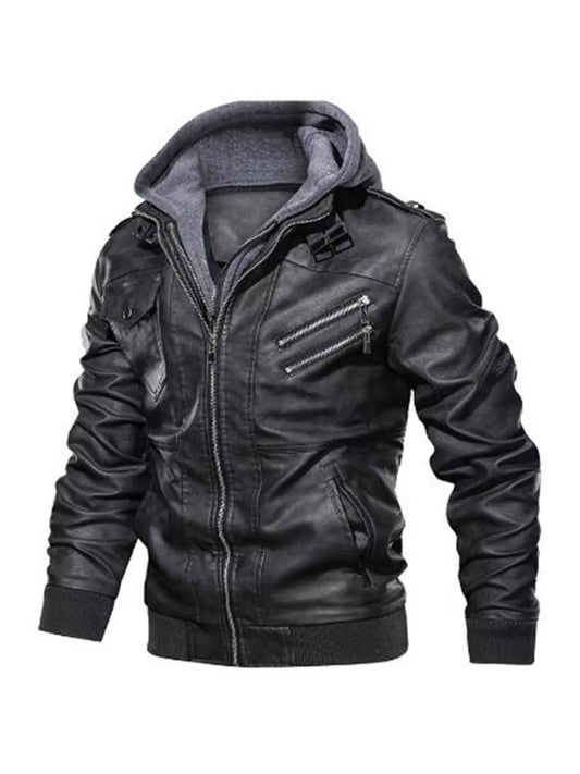 Men's Full Size Hooded Faux Leather Moto Jacket Plus Size
